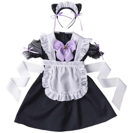 [New] コスプレ ハロウィン アニマル ねこ マオメイド キッズ 120cm/140㎝ ブラック【クリアストーン】