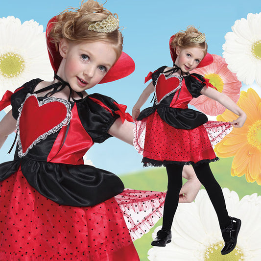 コスプレ ハロウィン キッズ こども ハートクイーンガール 100cm レッド【クリアストーン】