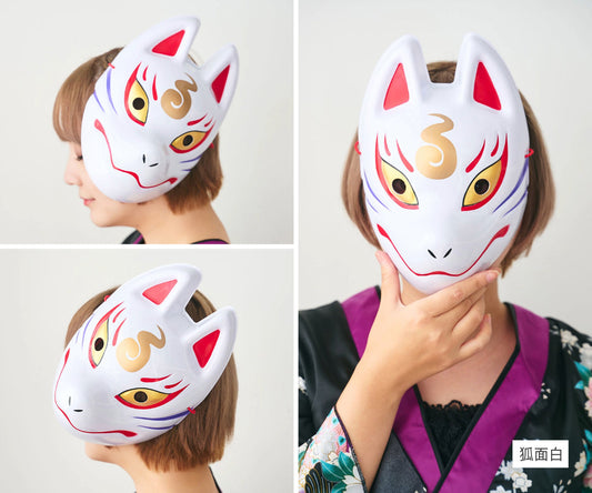 [New] コスプレ小物 きつね お面 和風お面 狐面 ユニセックス フリーサイズ ホワイト/ブラック/レッド 【クリアストーン】