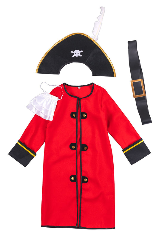 コスプレ キッズ こども 海賊 ハロウィン キッズキャプテン 男の子 100cm/140cm レッド 【クリアストーン】
