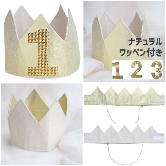 小物 ベビー 王冠 バースデークラウン リバーシブル ナチュラル/グレー/ピンク/ブラック【クリアストーン】