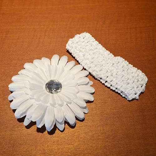 小物 ベビー 赤ちゃん ヘッドアクセサリー フラワー ホワイト/ピンク 【クリアストーン】