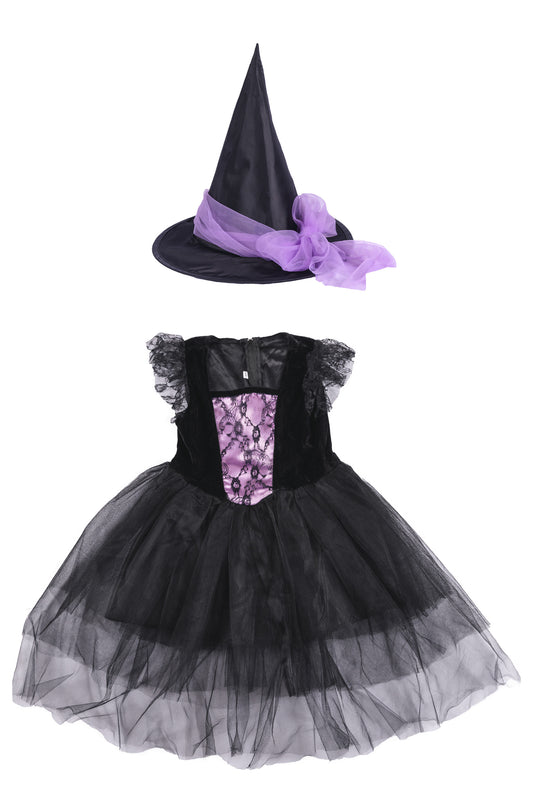 コスプレ キッズ こども 魔女 ハロウィン ノワールウィッチ 女の子 120cm/140cm ブラック 【クリアストーン】