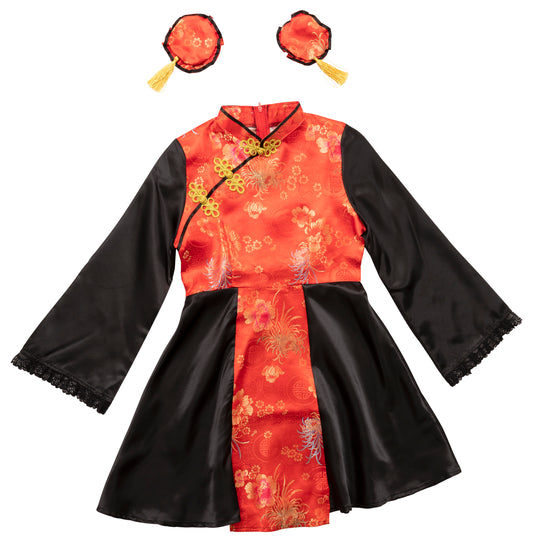 コスプレ ジュニア こども チャイナ COSCHU! チャイニーチャイナ 140~150cm ブラック レッド/ブルー【クリアストーン】