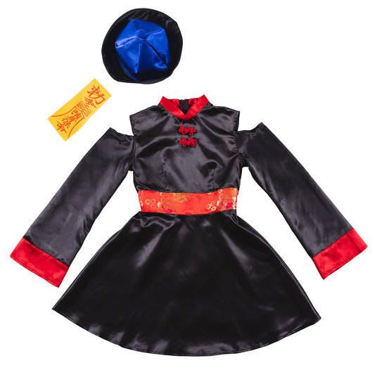 [New]コスプレ ジュニア COSCHU! ルーズスリーブキョンシー 150cm ブラック レッド【クリアストーン】