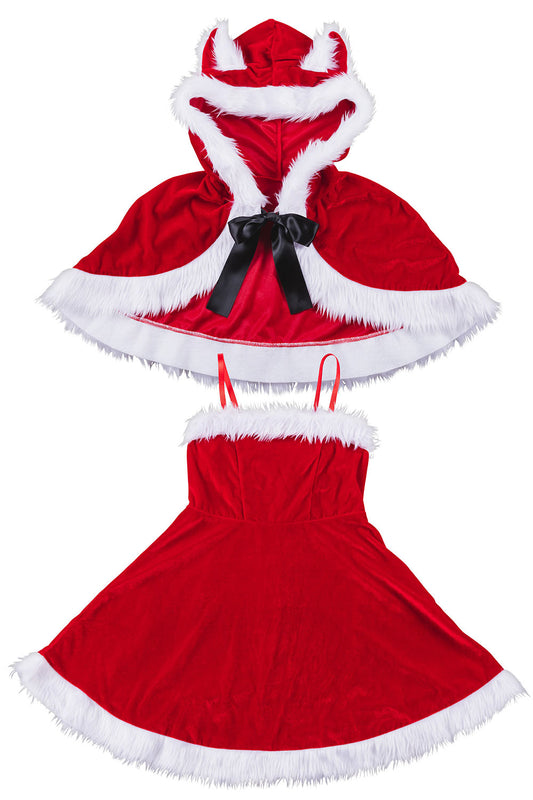 コスプレ ジュニア こども クリスマス メリープラムフェアリー ねこケープサンタ 150cm 女の子 レッド/ブラック 【クリアストーン】