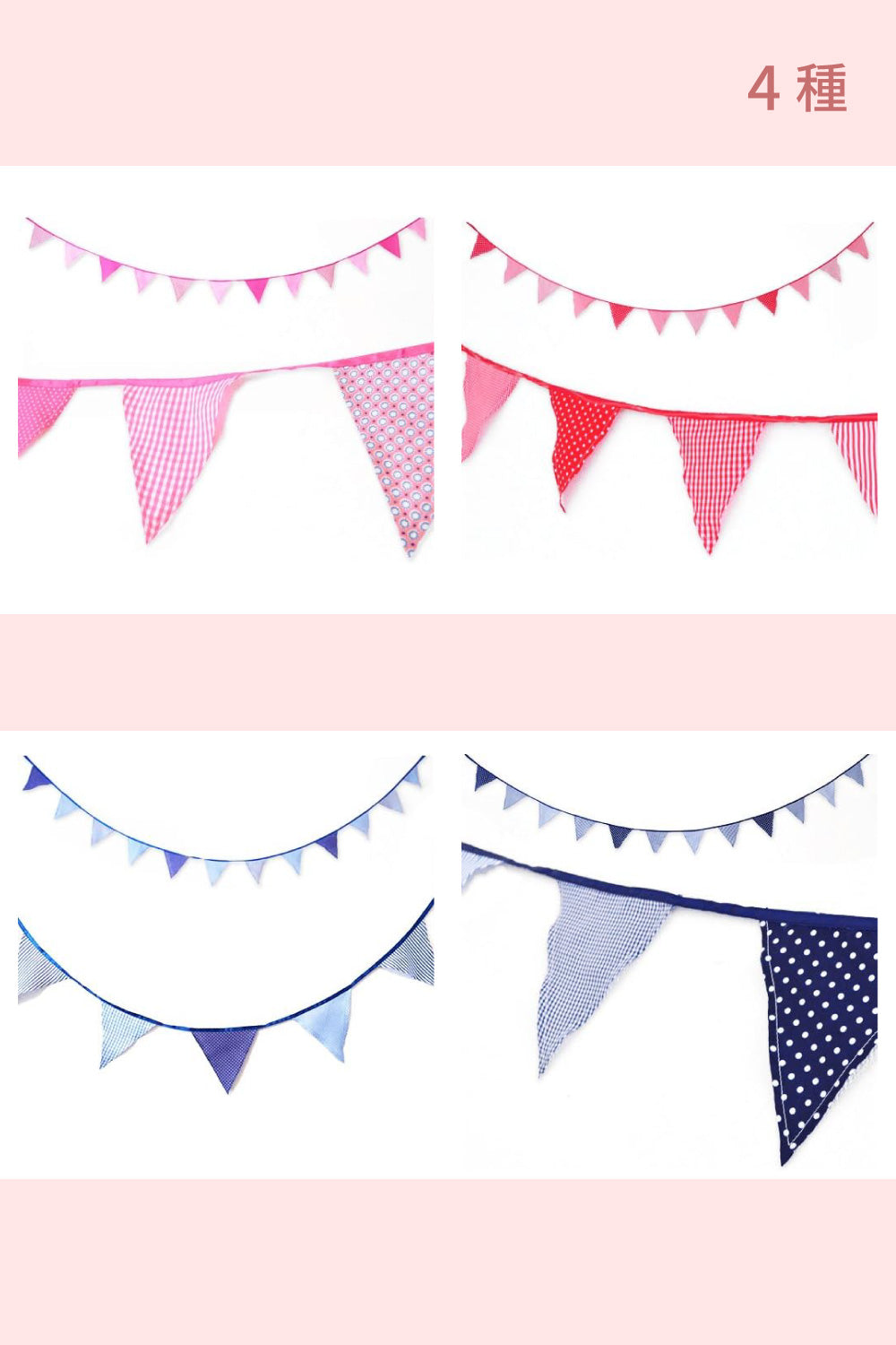 小物 ガーランド バナー ファブリックパーティーバナー ピンク/レッド/ブルー/ネイビー 【クリアストーン】